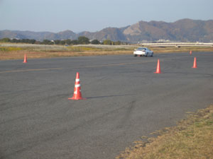 パイロンの片付け中。