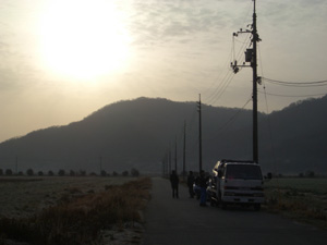 朝7時30分の笠岡空港門前。