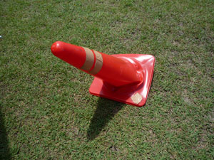 この時期のパイロンは熱で柔らかいのですぐに修正可能です。