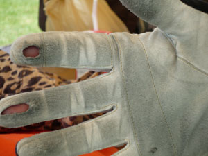 大事に使っていましたが、スエード生地の攻撃性に負けたらしい。