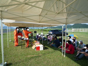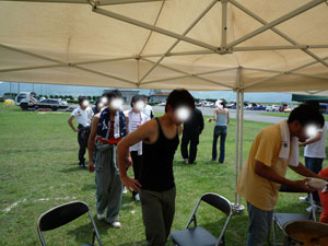 なぜか本部の設営準備中に、余ったパイロンで包囲される・・・