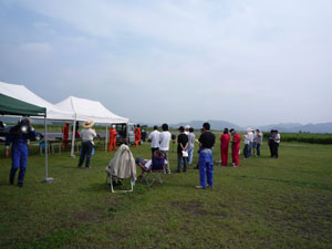 出走ラインへの移動を人力で!! そしてたまには私も旗振り。