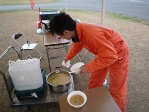余っていた豚汁を早々に集まった輩に食べてもらう。