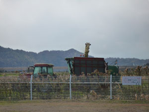 刈り取ったそばから風で粉砕カスがそこら中に舞っていた。
