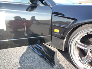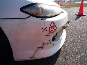 パイロンを吹っ飛ばしドアにパイロン痕。