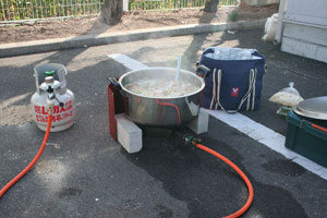 苦学生だけでなく、おっさん方にも好評の豚汁。