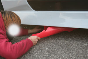 見事に車体下へ吸い込まれていき、引っ張っても取れない。
