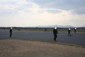 手の空いた参加者に手伝ってもらい滑走路の清掃。