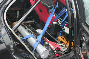 クラッチ終了プリメーラの車内に転がる謎のパイプ。