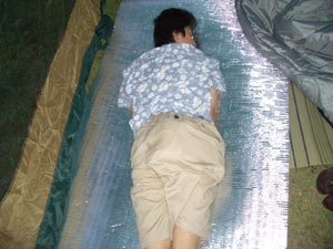帰宅した人、テントや車で各々寝ていました。