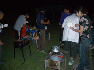 灯油をかけながら池の対岸で何かを盛大にバーニングしていました・・・暗闇で見る光景は死体焼却を思わせる光景でした。