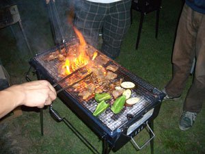 頑張って国産牛を用意しましたが、脂分が多かったせいなのか直火焼き状態でした。 |