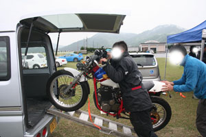バイクを積載しての参加が可能となり、早速持ってきてました。