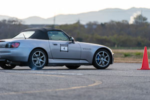 ジムカーナにはボタンのサイドブレーキは辛いですね。 |