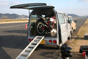 今回はバイク持参。