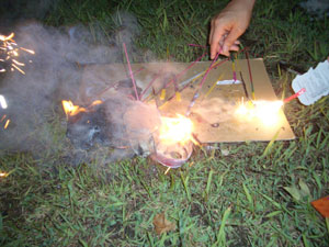 その後、缶に花火を詰め込み缶の中で花火が!!