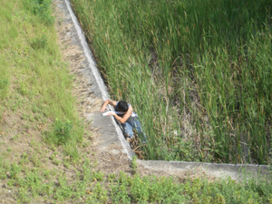 横の沼地らしいところへ落下。