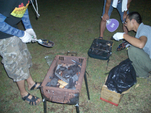 火起しのやり方も人それぞれで見ていて面白い。 |
