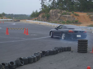 下手くそなドリフトをしている私です。 慣らしが終わったばかりの車高調で参加しました。