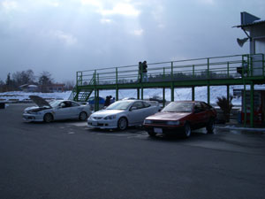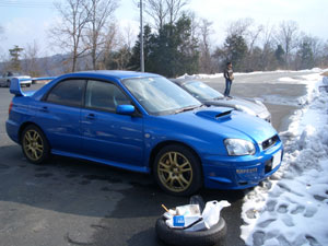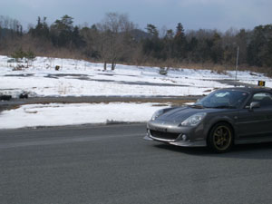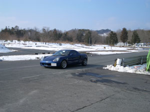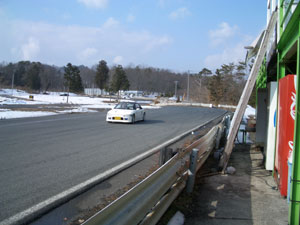 コース上には雪はなかったのですが、最終コーナーだけ雪溶け水が川を作っていて少々走り難かったです。 |