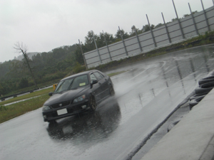 ウェットだと簡単にリアが流れるのでやりやすい。