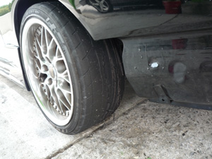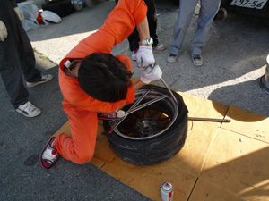 運よく発見し、ビードを落としタイヤレバーで奮闘。 |